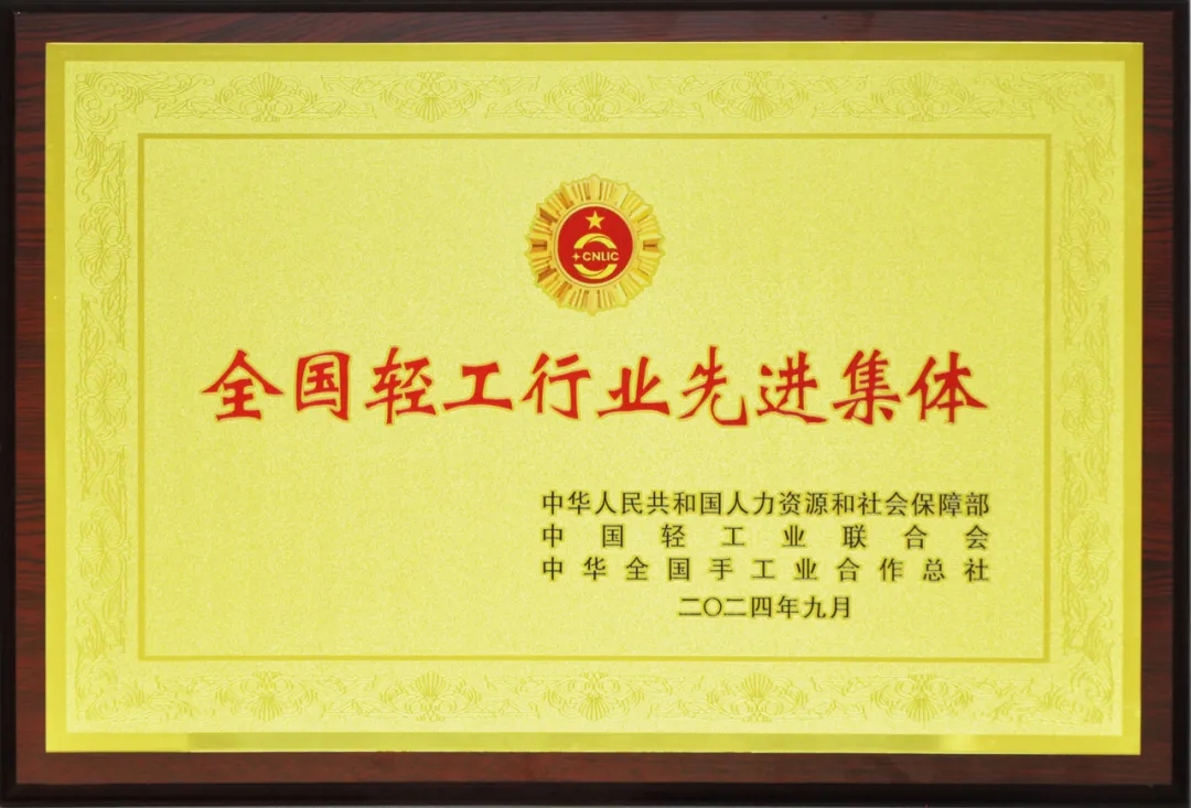 全国轻工行业先进集体由中华人民共和国人力资源和社会保障部、中国轻工业联合会、中华全国手工业合作总社联合颁发。该奖项每五年评选一次,旨在表彰在科技创新、技术改造、节能减排、质量管理等方面居全国同行业领先地位,产品在国内外市场竞争力突出,品牌文化建设成绩突出,经济效益居全国同行业前列的先进集体。