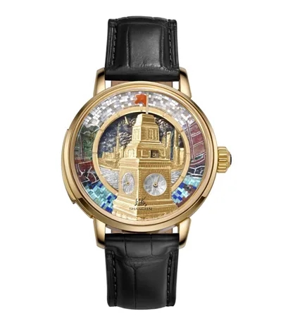 以城市记忆为魂,以金雕、微镶工艺为骨,以三问报时鸣响时代之声,上海表复兴·上海之晨黄金微雕三问腕表,将外滩钟韵、江岸风华及上海作为航海贸易中心的辉煌历史凝聚于腕间。
