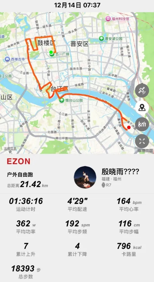 福州赛道穿梭于城市与江岸之间,信号环境复杂。宜准R7搭载的双频五星定位系统,在起点处迅速完成搜星,全程轨迹记录精准无漂移,即使经过高楼、桥梁,数据依然稳定可靠。