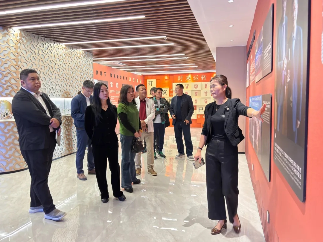 走访首站,商会一行抵达RARONE雷诺表在中山全新落成的总部基地——“雷诺智谷”。在企业展厅中,企业家们通过丰富的图文与影像资料,全面了解了雷诺表从创立至今的品牌历程、技术积累与产业布局,感受到企业深耕精密制造、持续向高端化智能化迈进的坚定步伐。