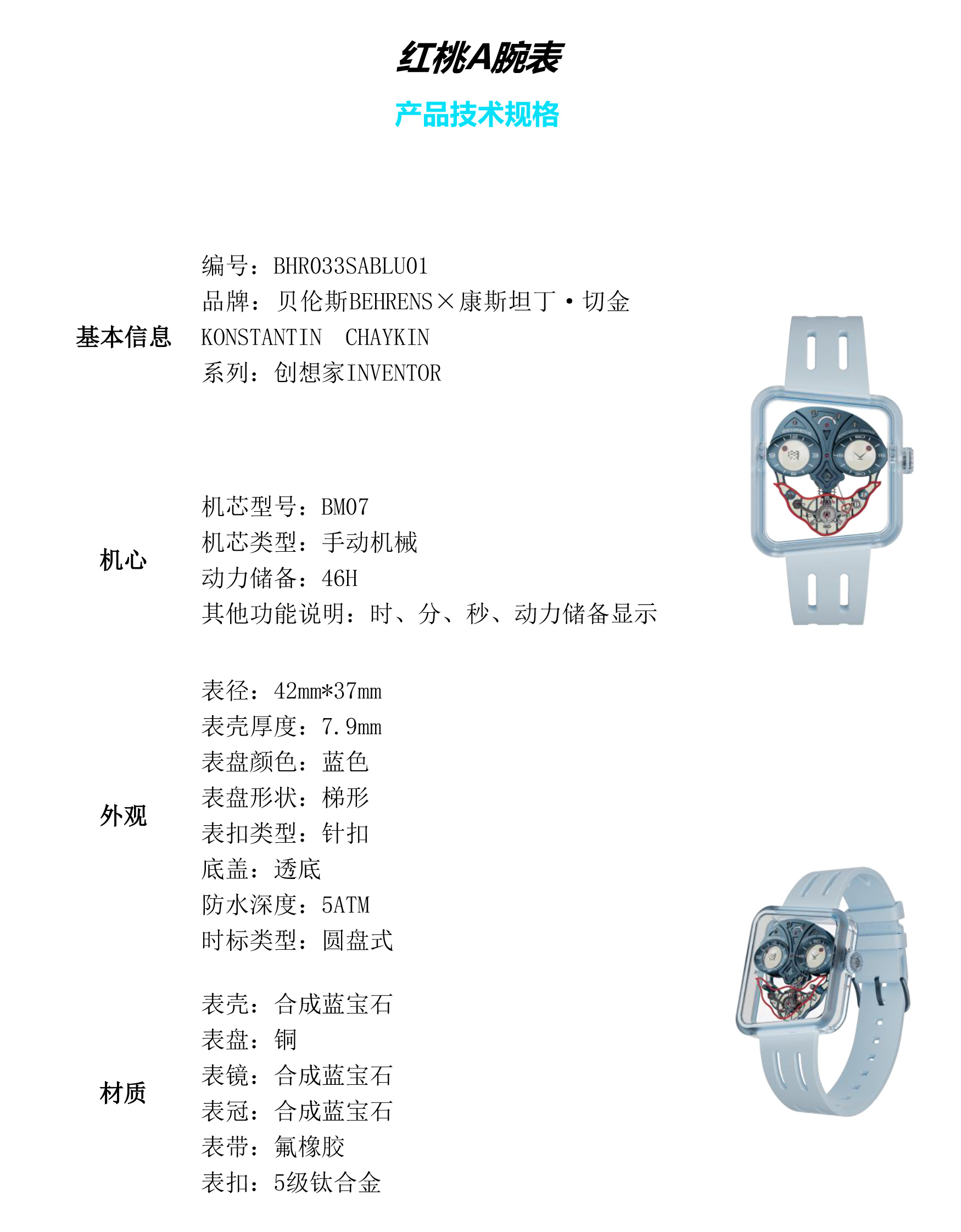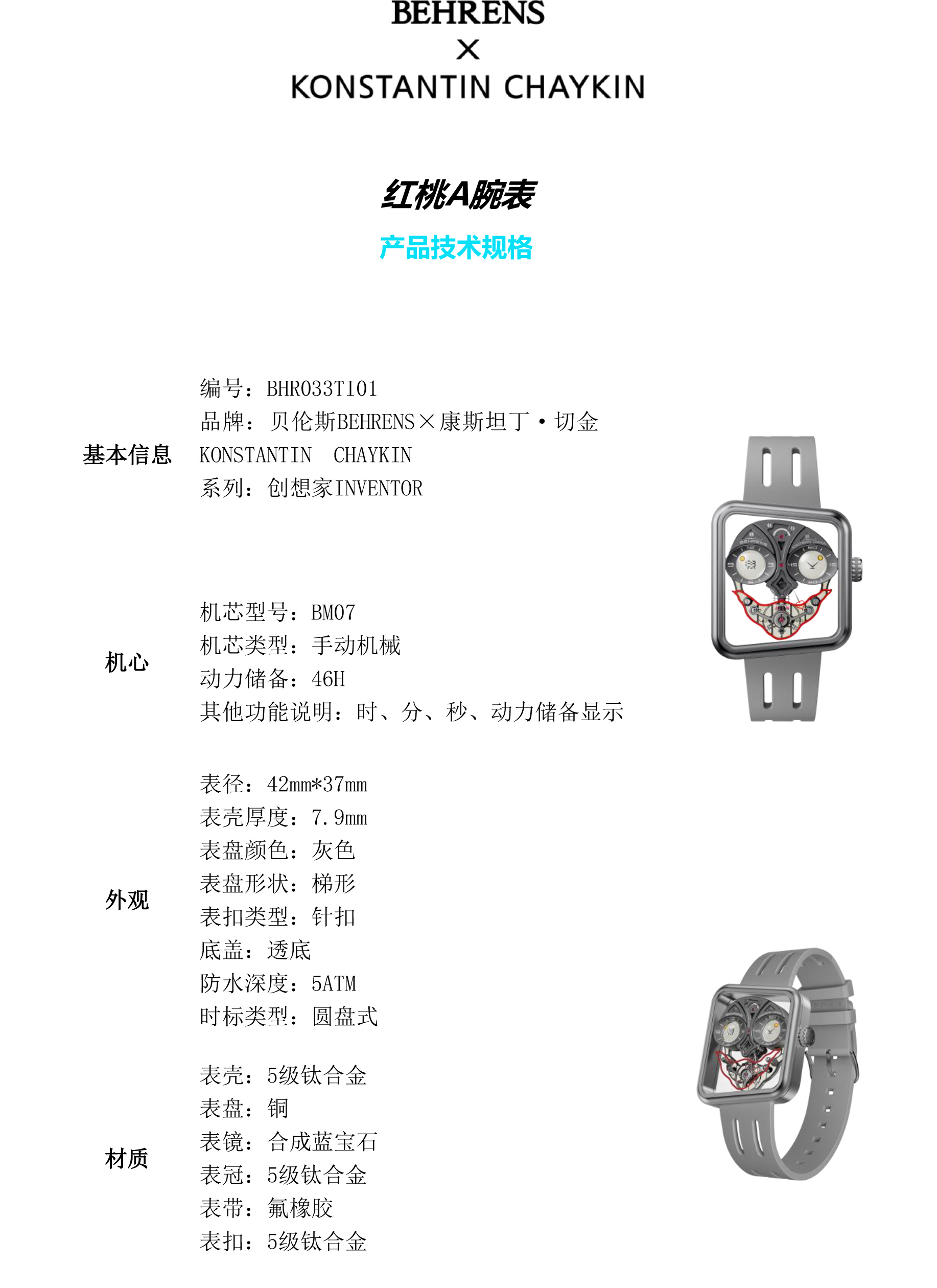 为纪念中国高级独立制表品牌贝伦斯BEHRENS与独立制表师康斯坦丁·切金Konstantin Chaykin(黑桃A)成功合作三周年,推出全新“红桃A”联名限量款腕表。