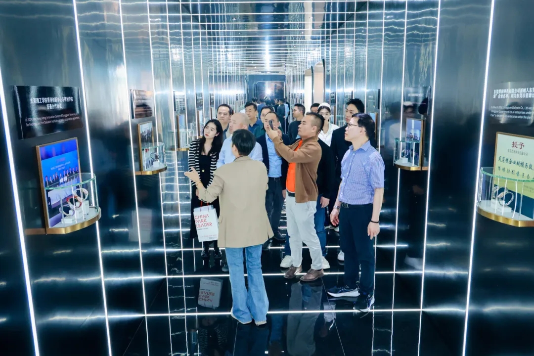 在产业生态构建方面,刘总分享到“道滘新园区将于明年三四月份启动开园,规划10栋功能楼宇,涵盖总部创意设计研发中心、得利学院、钟表文化实验科学馆(与中科院合作深化精密时间技术研发)、国际大师工作室(已入驻4位国际大师开展高端定制)、智能穿戴制造基地等,与凤岗园区形成主产业与供应链配套的协同格局。” 这番介绍,让参访代表对行业发展趋势有了更全面的思考。