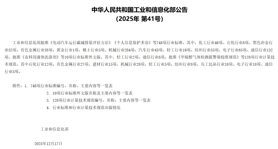 近日,工业和信息化部发布2025年第41号公告,批准发布了748项行业标准,其中包括QB/T 2265-2023《计时仪器零部件分类、名称和编号 销钉式机械闹钟》、QB/T 2268-2025《计时仪器 金属外观件漆层的技术要求和试验方法》、QB/T 8182-2025《表壳体及其附件 抗氧化性能试验方法》、QB/T 8190-2025《表壳体及其附件 往复摩擦试验》和QB/T 8191-2025《机械手表综合参数测试系统操作规程》等5项钟表行业标准,该5项标准将于2026年7月1日起实施。