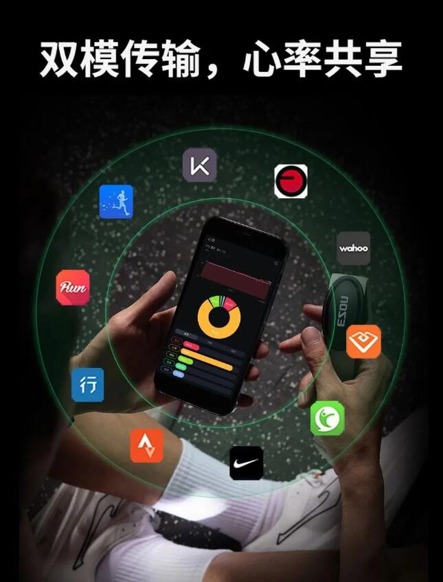 该心率带搭载ECG医疗级心率监测,不受汗水、晃动等干扰,数据精准度媲美心电图;支持蓝牙/ANT+双模,可适配主流运动APP、智能手表及跑步机;内置电池续航长达一年,织物材质佩戴轻盈亲肤。